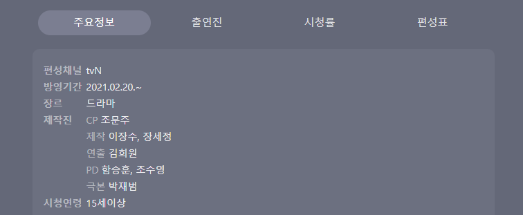 방송은 2021년 2월 20일부터 시작하고 극본을 박재범 작가님이 맞으셨는데