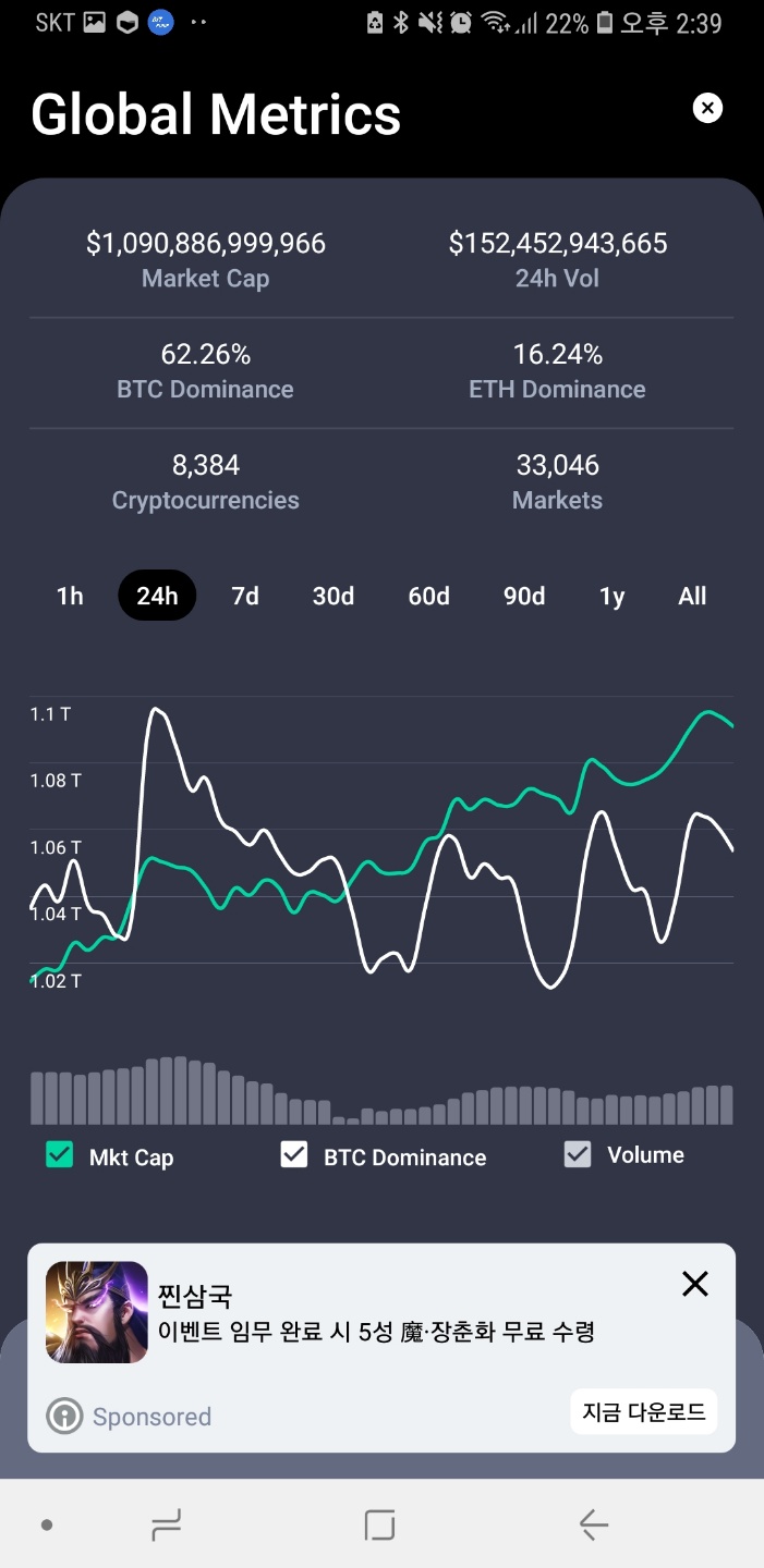 그리고 이외에 코인마켓캡 어플도 가지고 있으면 비트 도미넌스 살펴볼때 좋습니다.