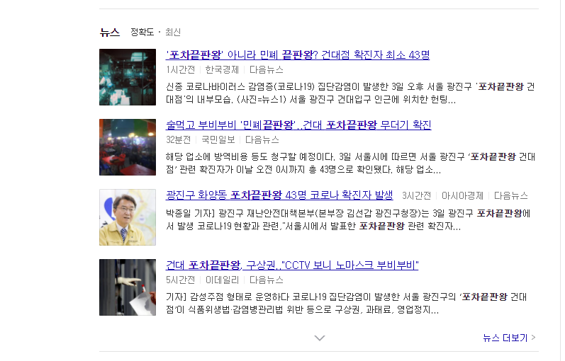포차 끝판왕과 1943 건대점에서 43명 이상의 무더기 확진자 발생!!!