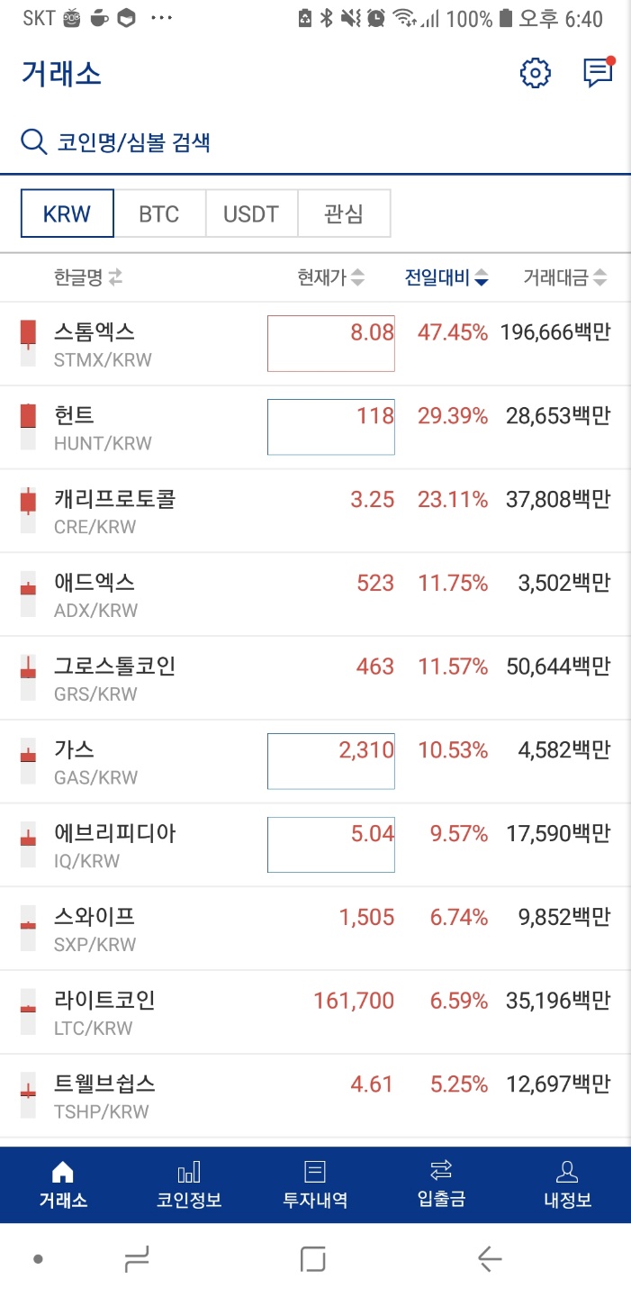 오전의 코인들중 스톰엑스를 제외한 나머지 코인들은 그냥 무난한 상승률을 유지하고 있네요
