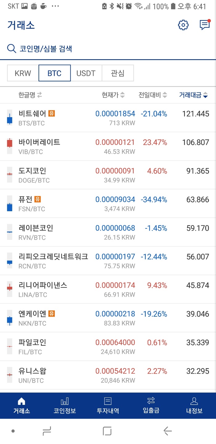 그리고 며칠전 이틀동안 몇백~몇천퍼센트 펌핑을 보여준 BTC 마켓을 보면