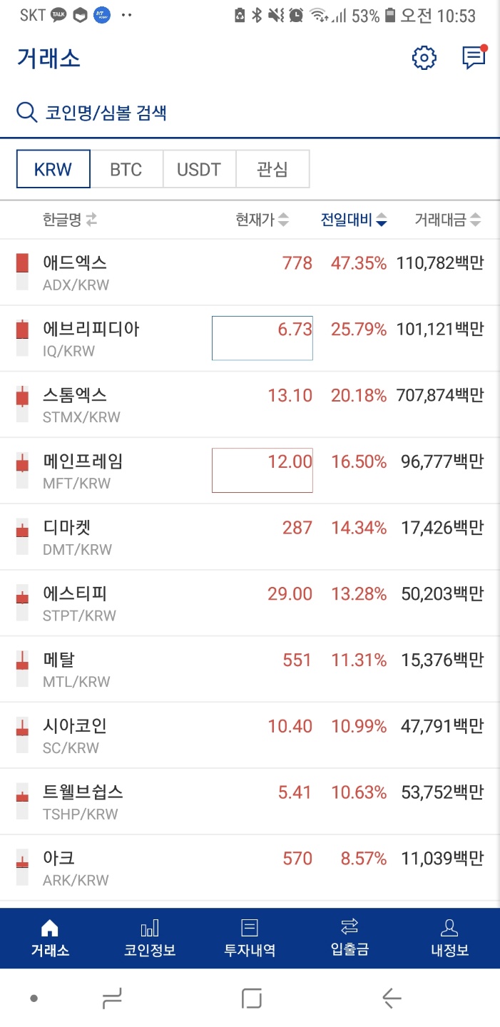 9시 되자마자 애드엑스 코인이 펌핑되고 지금까지 유지되는걸 보니 오늘은 애드엑스가 대장인듯