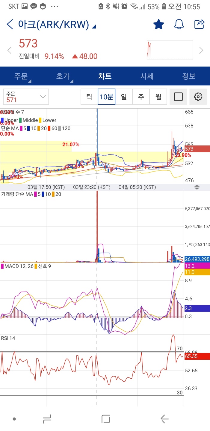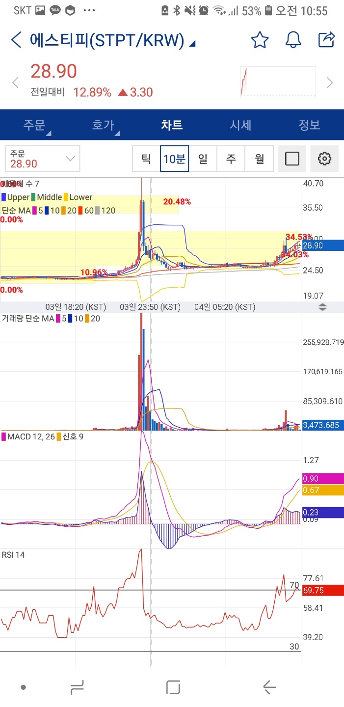 엽전주들의 펌핑이 끝난줄 알았는데 오늘 아침에 보니 오늘도 계속 엽전주들의 펌핑이 이어지나보다.