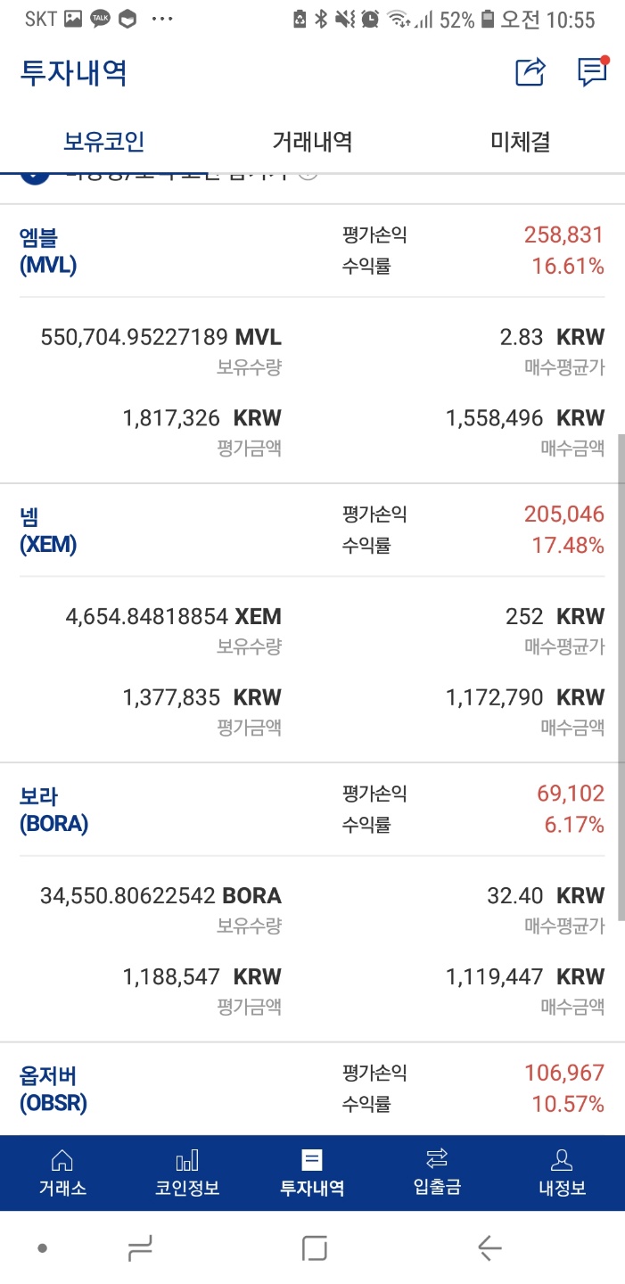 스톰과 기타 코인들의 펌핑 영향인지 1원대 엠블과 옵저버가 같이 올라서 기분좋긴한데...