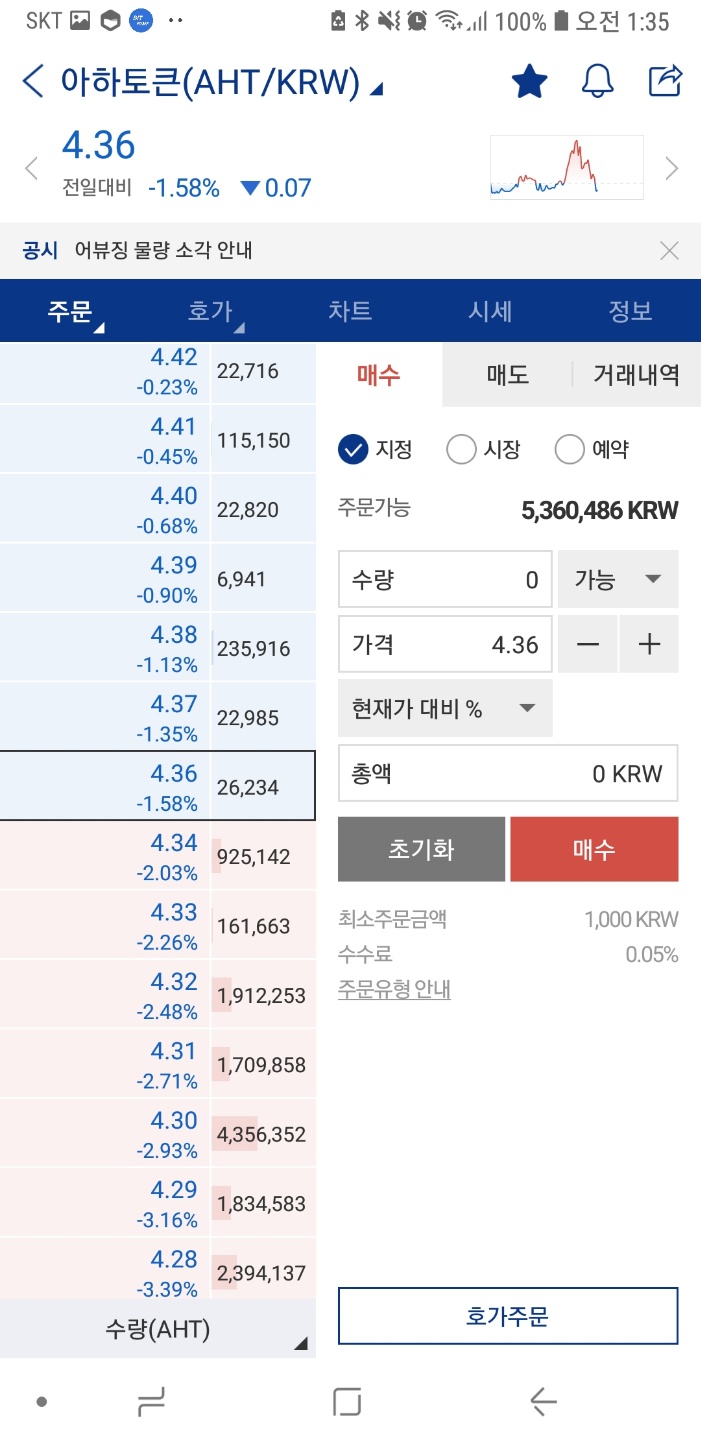 아하코인의 경우 +10퍼 이상에서 바로 마이너스로 전환되었고