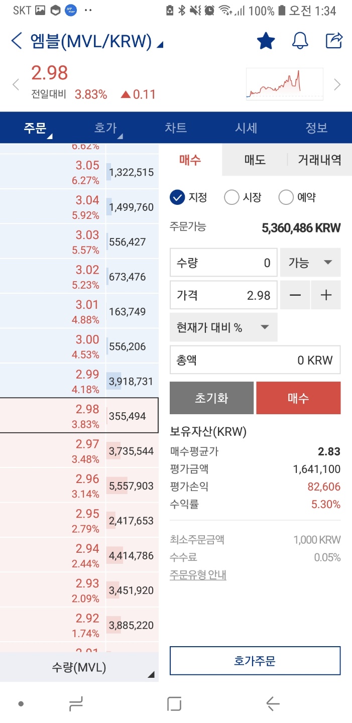 내가 가지고 있던 엠블과 에스티피 또한 순간적으로 -10~20퍼센트 하락이 생김