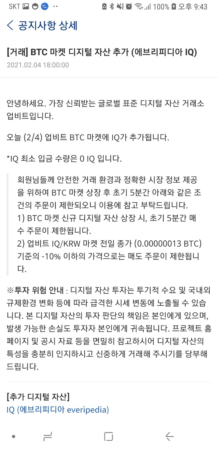 그리고 특이하게 에브리피디아가 btc마켓에 상장되었습니다.