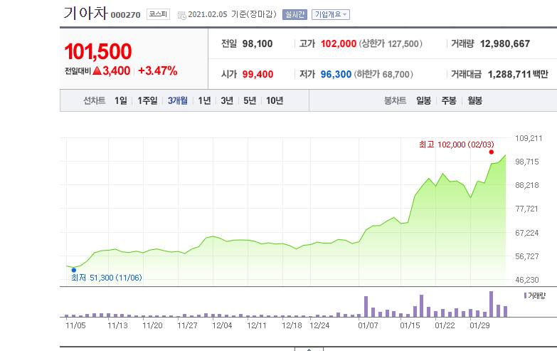 애플과의 협업 소식에 현대차 기아자동차의 주가는 계속 올랐는데