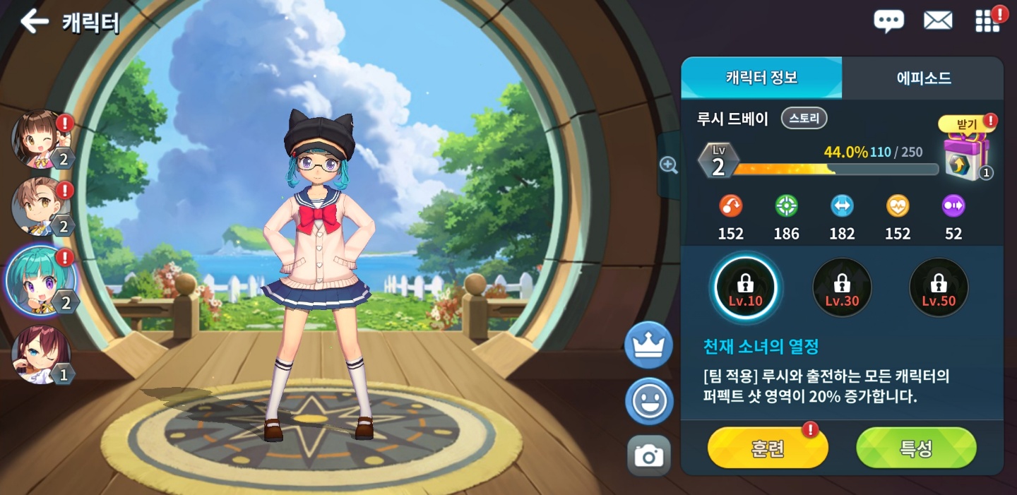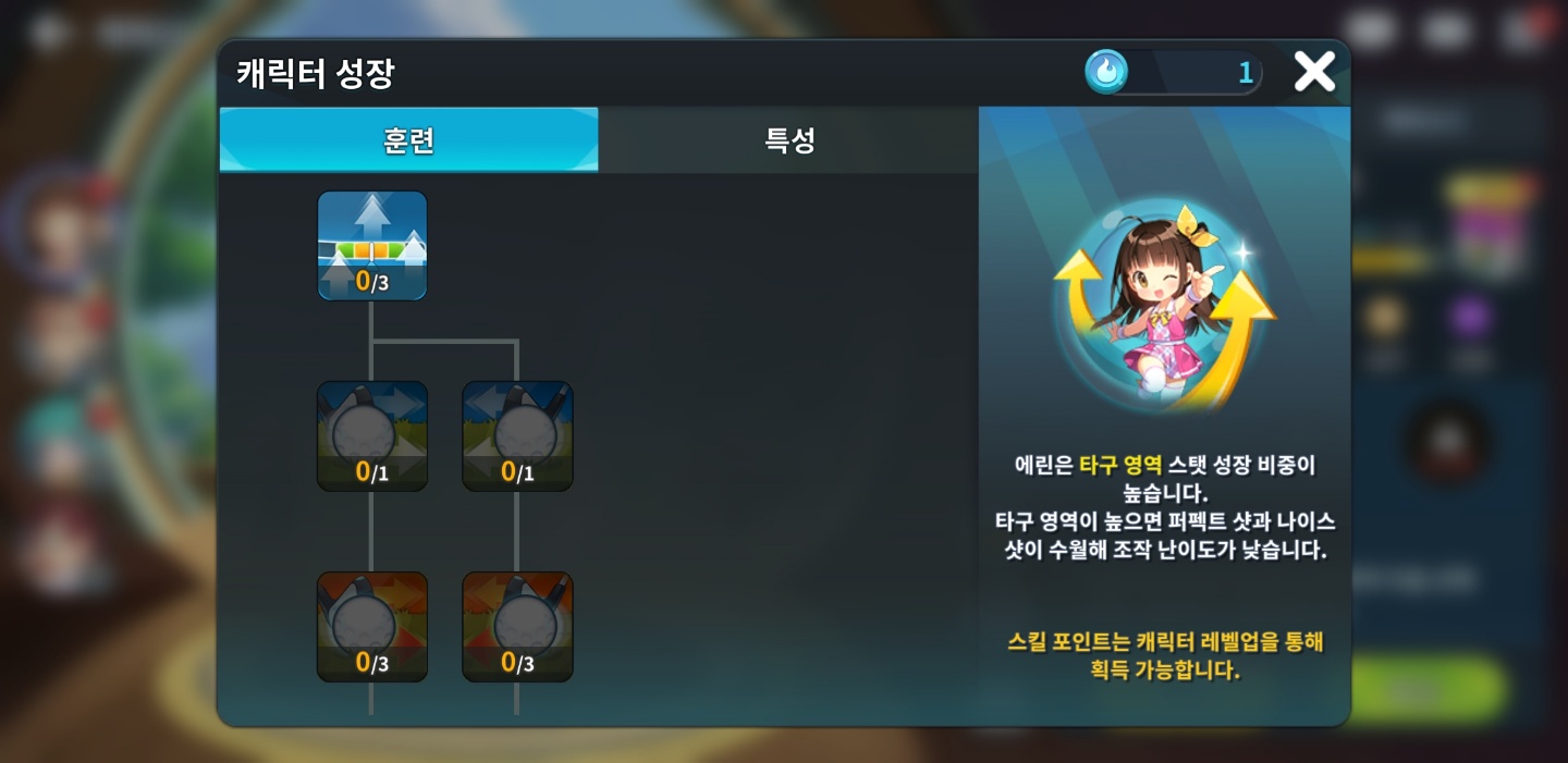 훈련과 특성으로 캐릭터들 능력치도 올리고