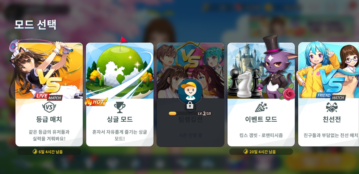 게임은 기본적으로 같은 등급의 실제 유저들과 겨룰수 있는 있는 등급매치가 있고