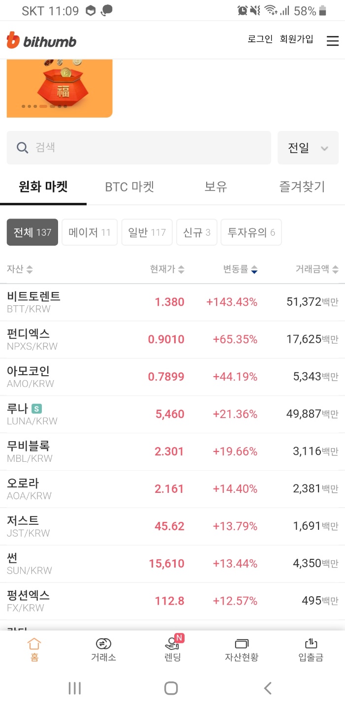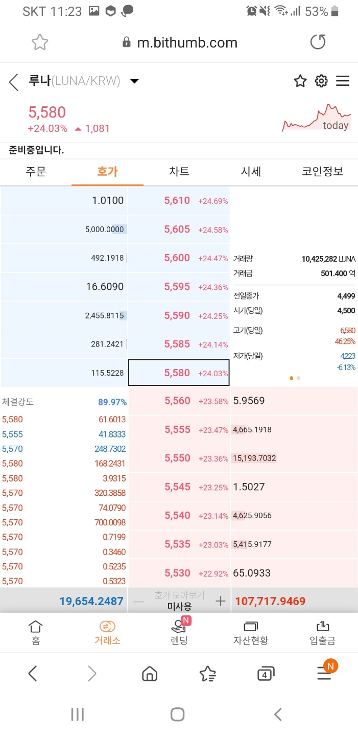 루나는 이제 4000원을 넘어6500원까지 찍었다가 5000원대로 유지중인데
