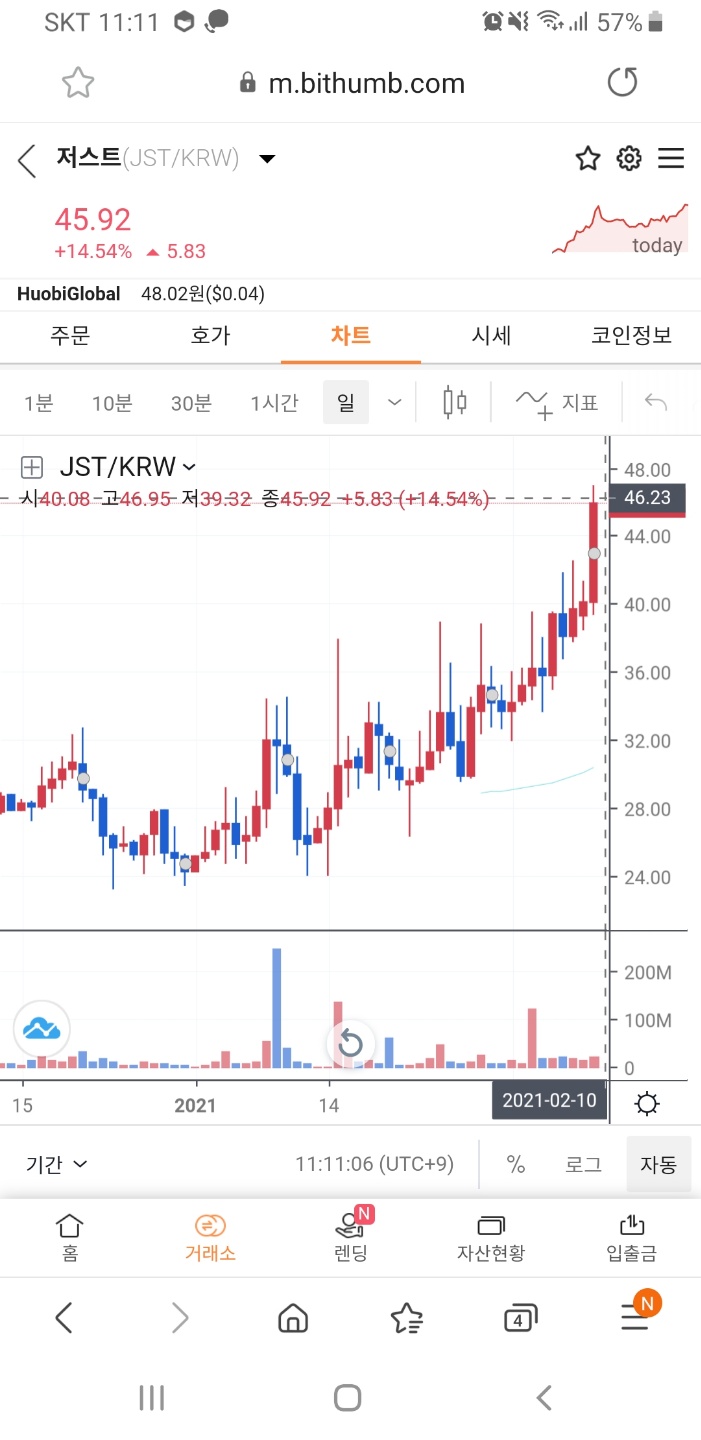 아마 업비트의 최저가 코인이 올라서 그 영향으로 오르는게 아닐까 싶은데