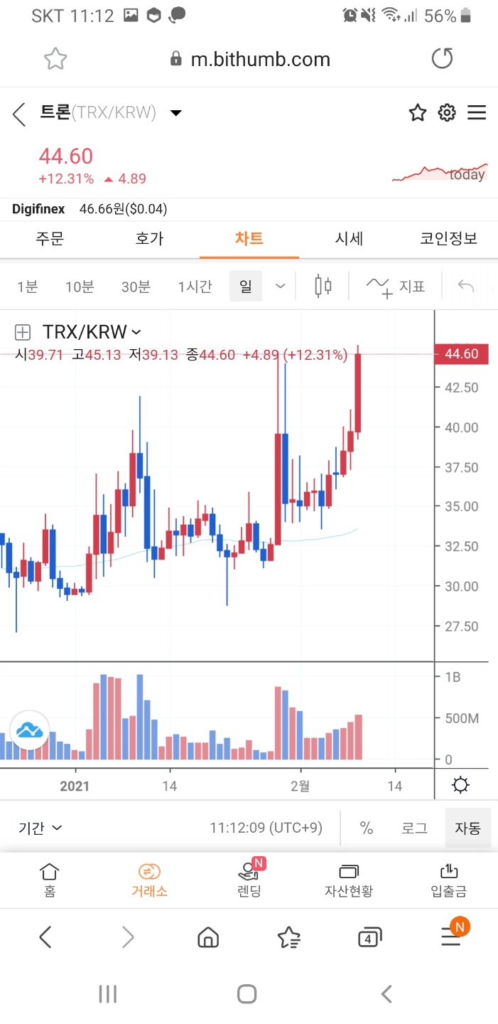 최근 바닥가격 0.4원대를 확인했는지 0.4원대에서 횡보하다가 오르고 있다.