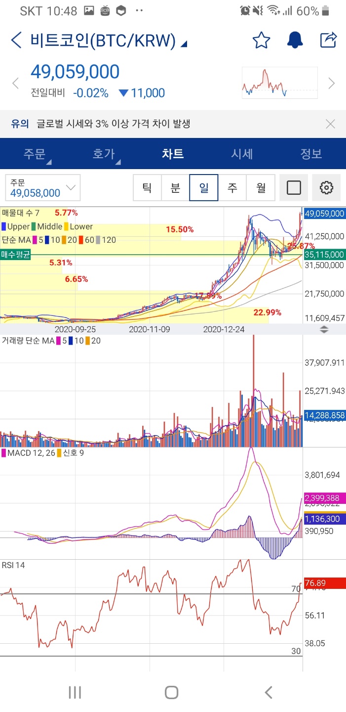 해외는 이미 5천만원을 넘어 5200만원까지 찍었고 우리나라도 오늘 한때 5천만원 돌파했다.