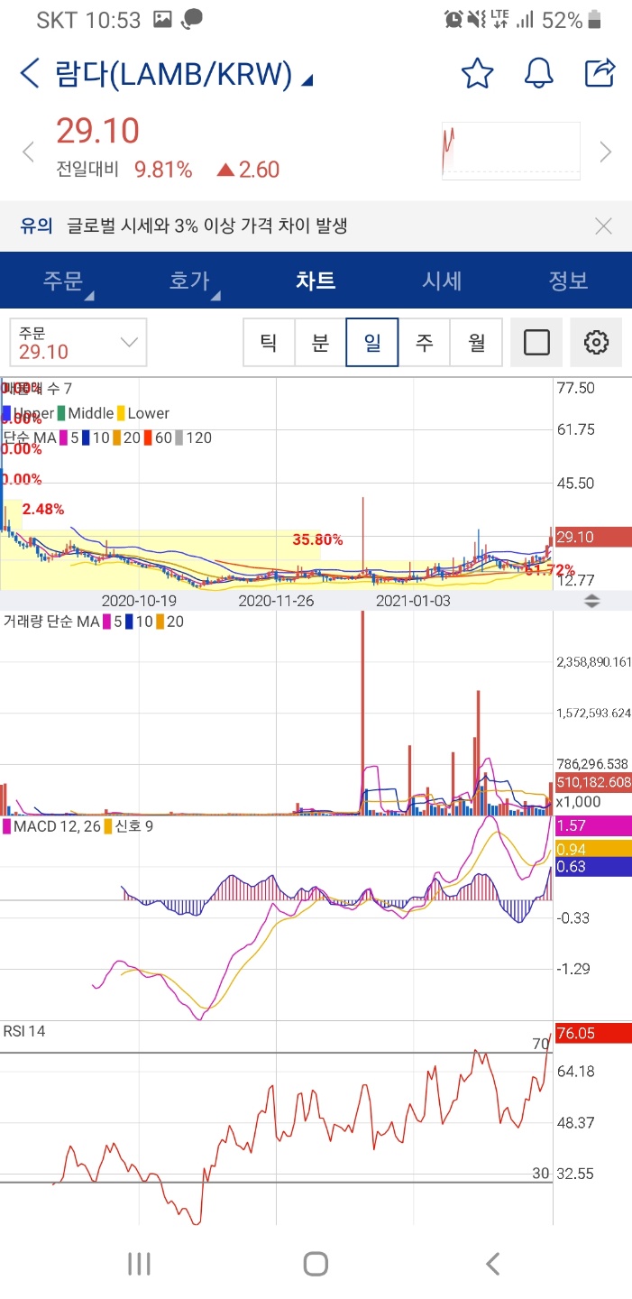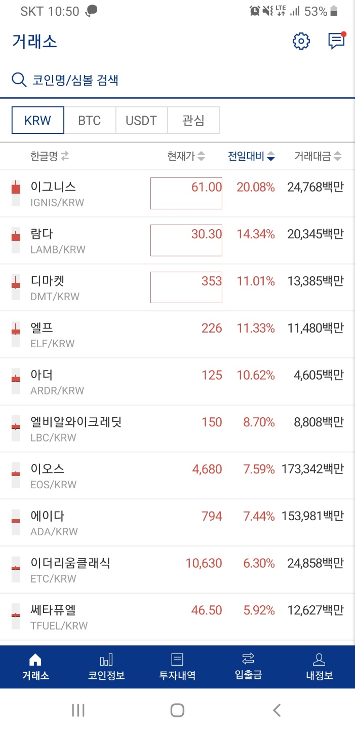람다도 오늘 올랐는데 얼마전에 샀다가 바로 팔았던 코인이어서