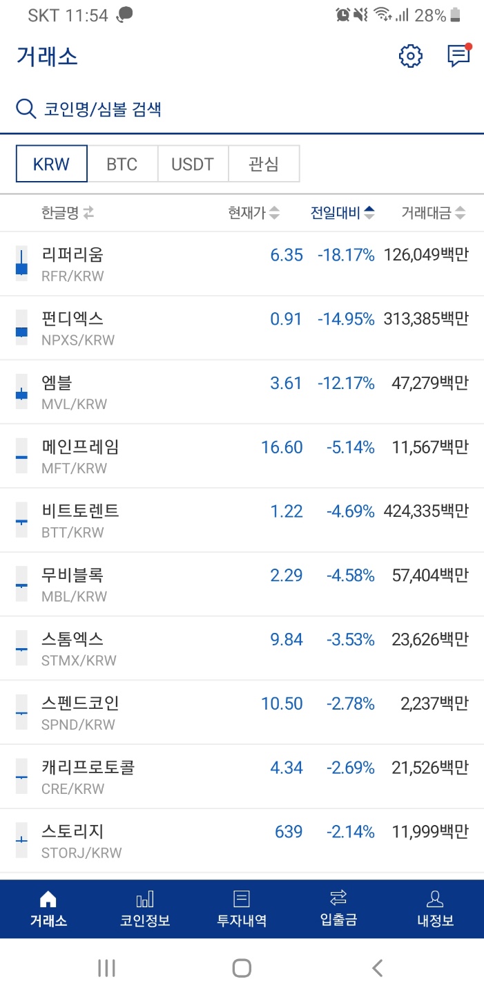 역시나 9시가 다가올수록 조금씩 떨어지더니 9시 이후 어제 올랐던 엽전 코인들은 엄청나게 폭락하기