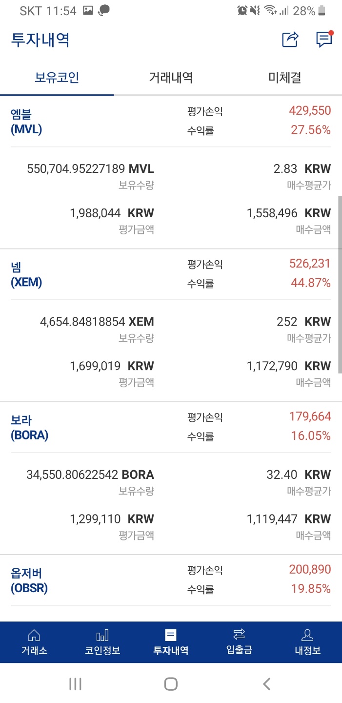 사실 나야 분산매매로 했고 저 4종류의 코인을 2월전부터 들고 있던거라