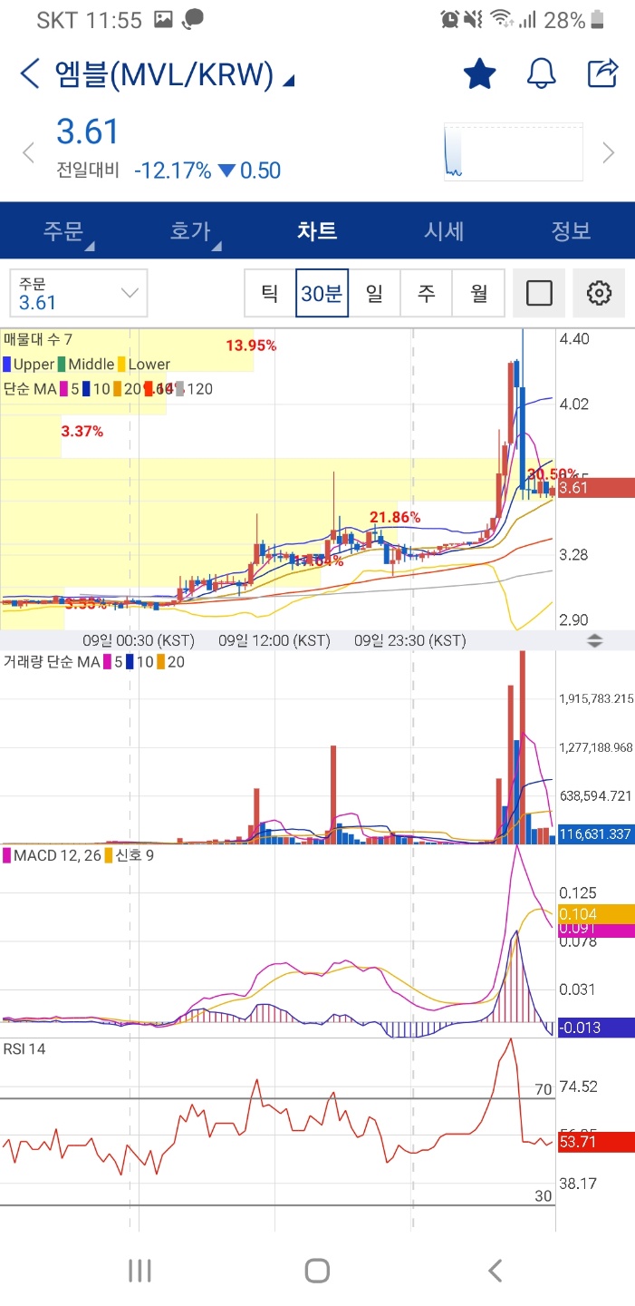 아마 새벽이나 이른아침에는 엠블이 30%이상으로 올라서 금액이 더 높았었다