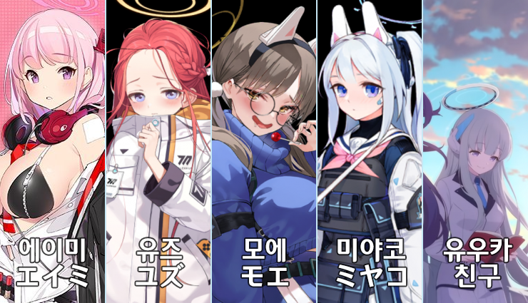위 그림은 블루아카이브에 나오는 캐릭터들이다.