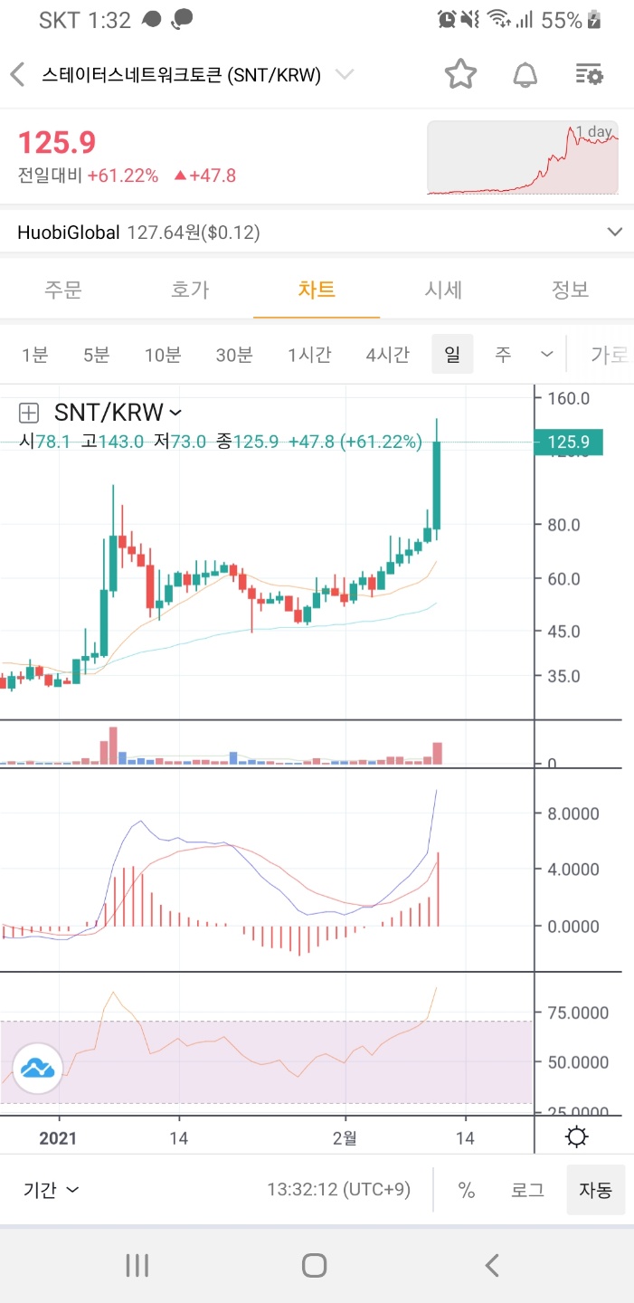 자정부터 상승한 스테이터스 네트워크토큰 상승률이 어마어마하다.