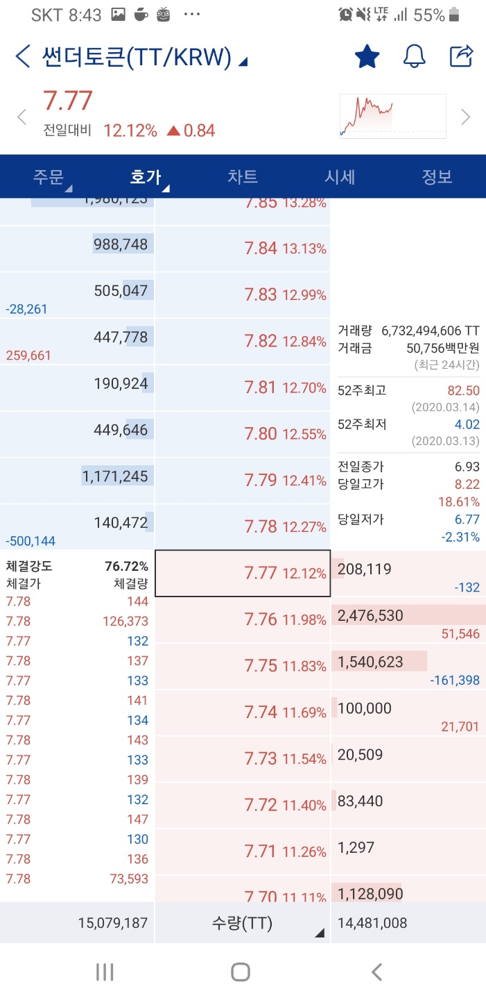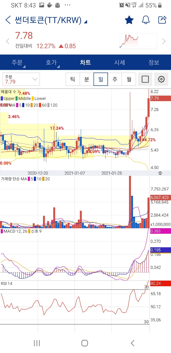 썬더 토큰도 다시 시동이 걸렸는데 저기 작년 신고가 82원은 설마 다시 가진 않을거 같다