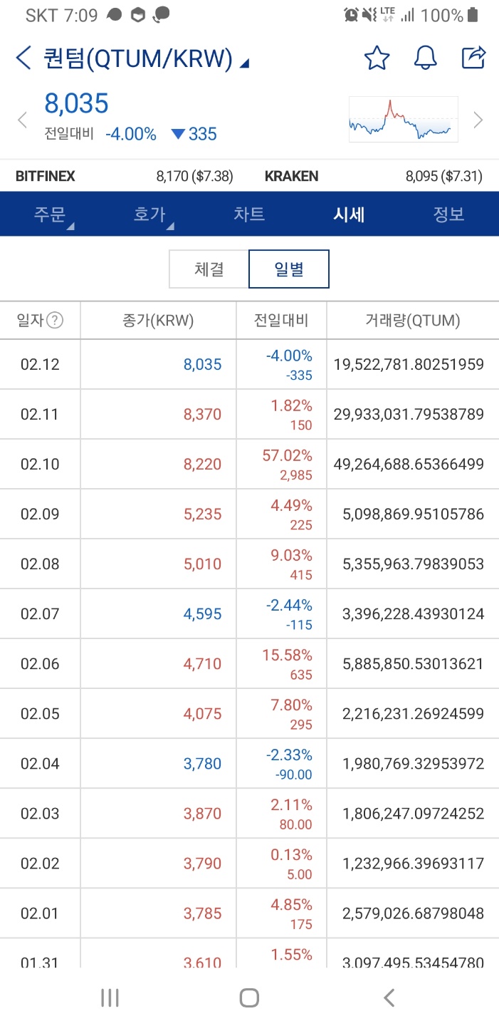 며칠동안 퀀텀으 3000원대에서 두배가 넘는 가격으로 올랐는데