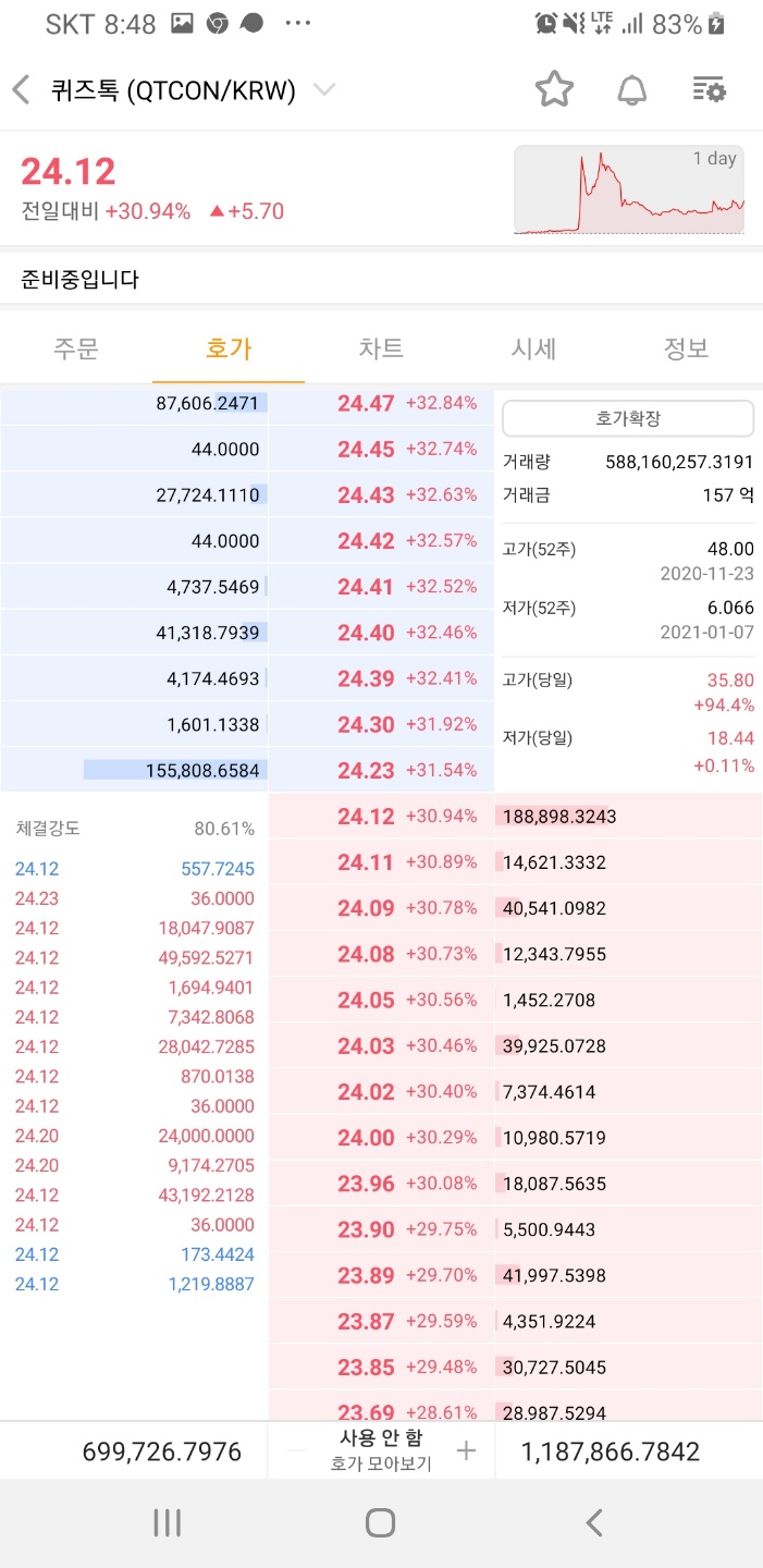 오늘은 퀴즈톡이 대장으로 치고 나가는데 빗썸의 경우 자정부터 펌핑이 와서 당일 오전까지