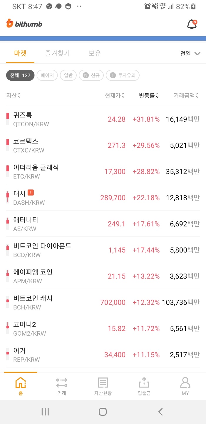 전에도 말했지만 업비트에 비해 빗썸이 아직 안오른 코인들이 많아서
