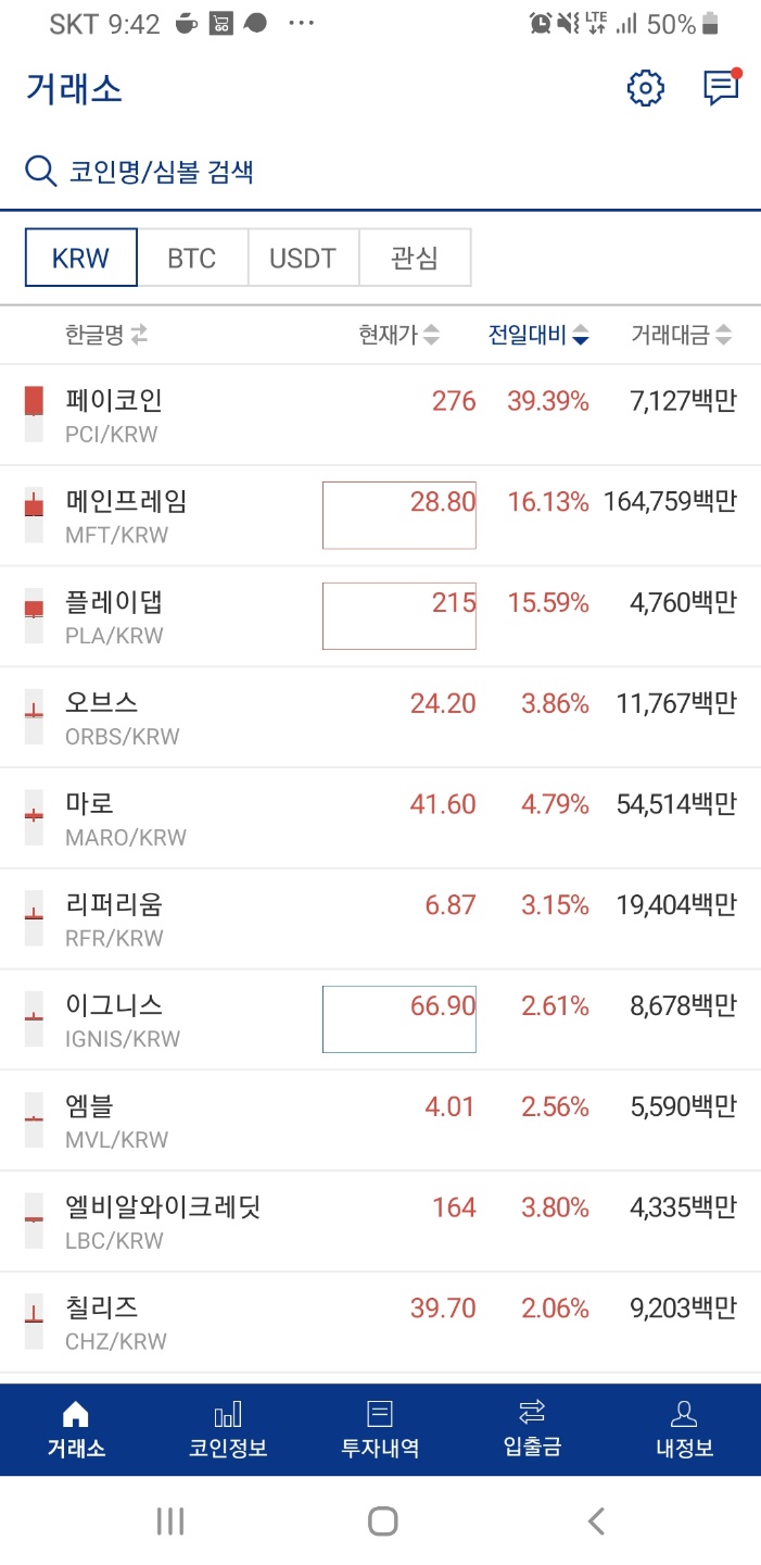 엽전코인들이 거의 오르고 있습니다.