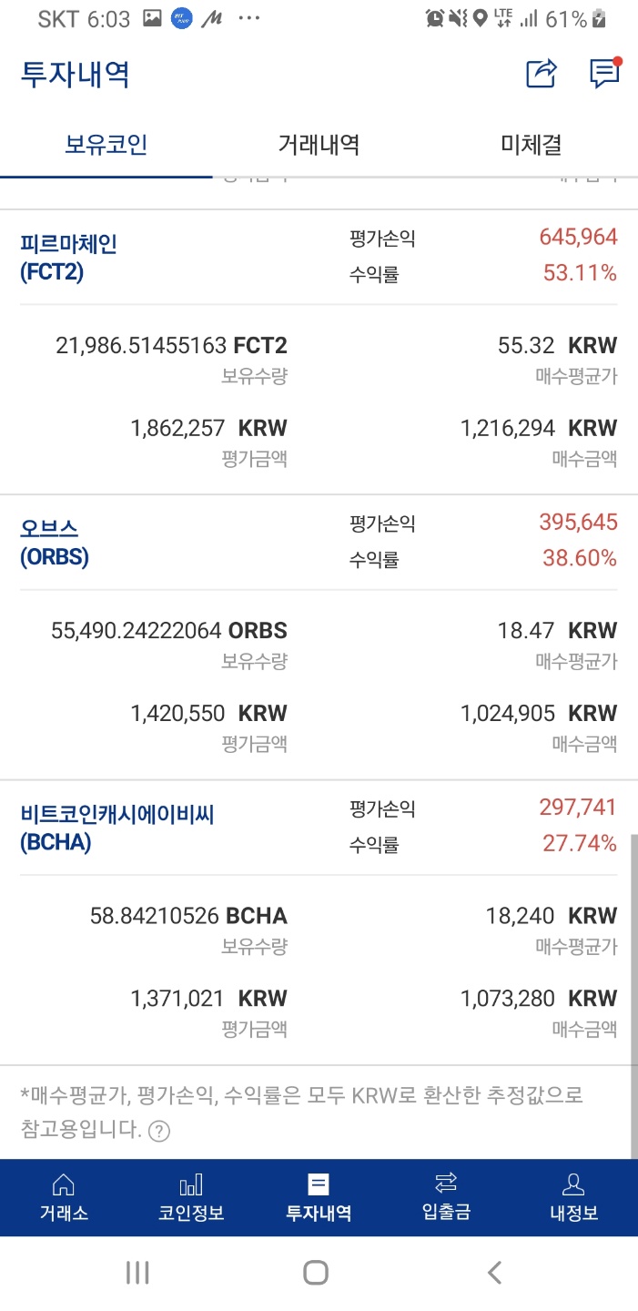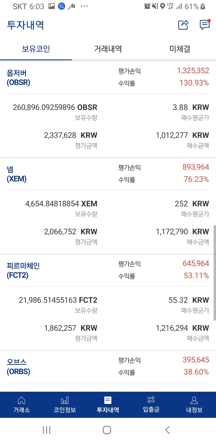다른 코인들도 조금씩 더 올라서 메꿔주긴했는데