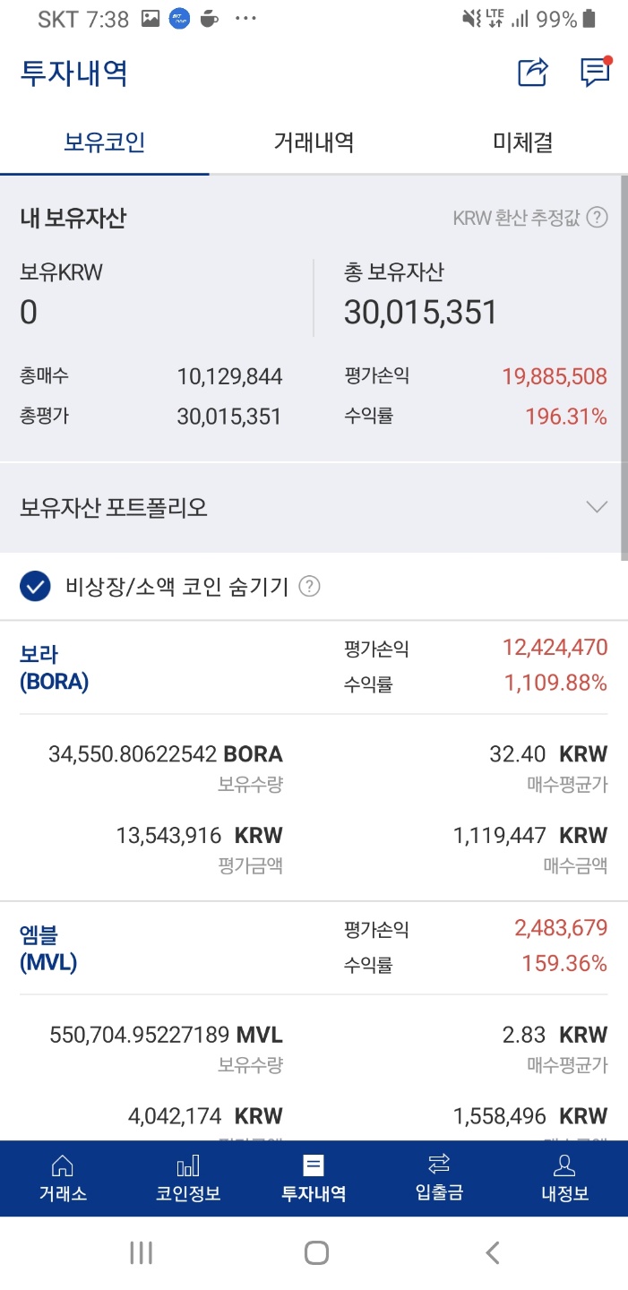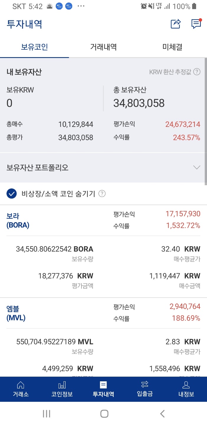 나머지 보유 코인들도 좀 올랐으면 좋겠네요.