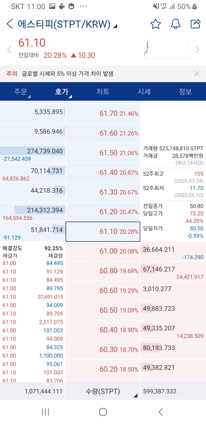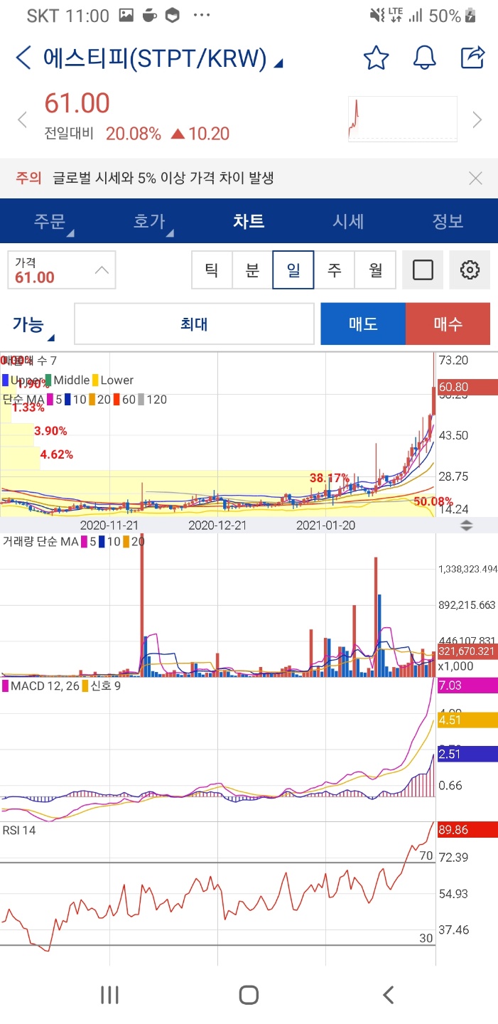 에스티피도 40%까지 찍었다가 글쓰고 있는 지금은 더떨어져서 6%대의 상승률이네요 ㄷㄷㄷ