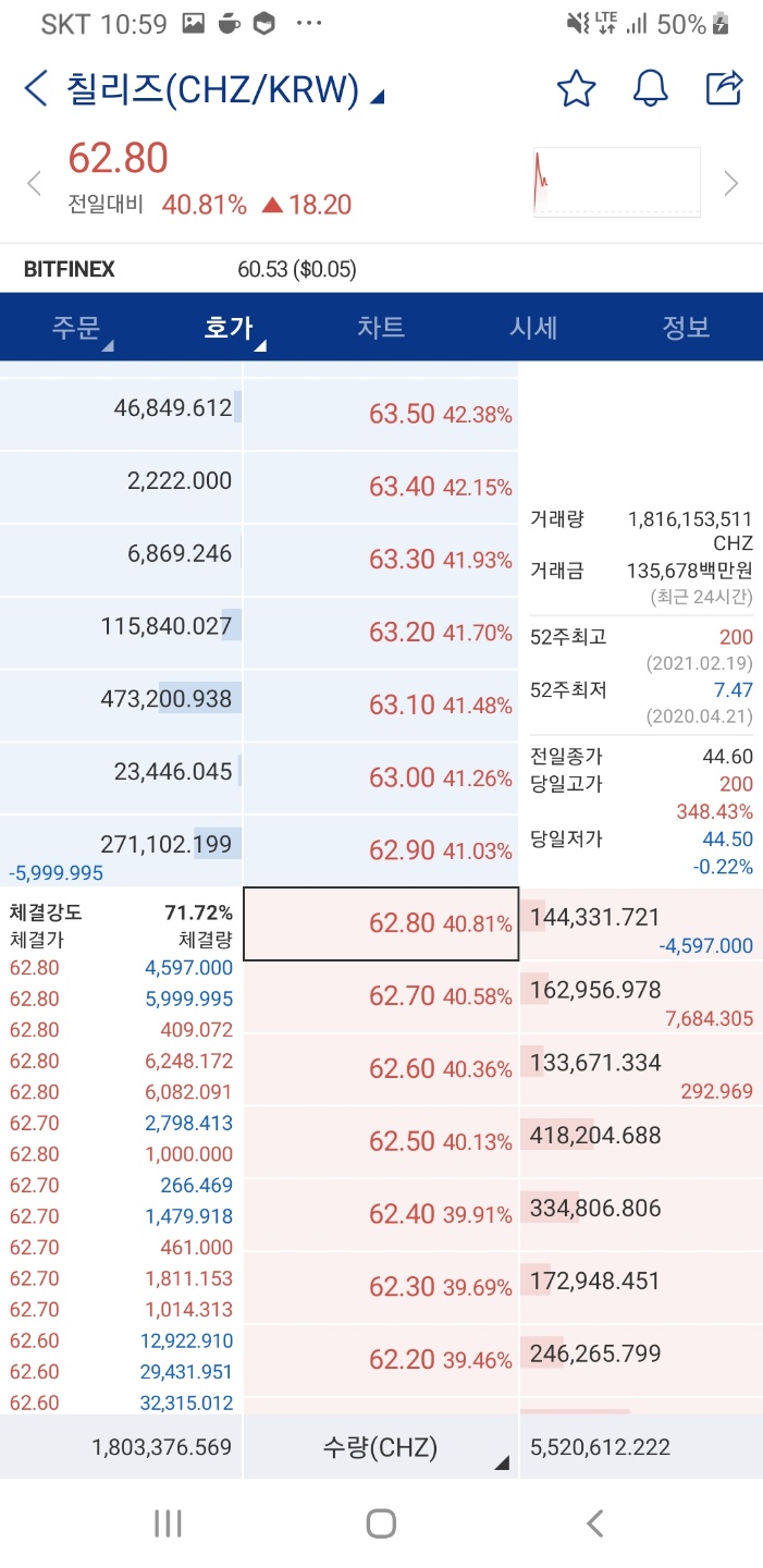 먼저 칠리즈를 보니 운동하느라 제대로 못봤는데 200원 300%까지 올렸네여 ㄷㄷㄷ