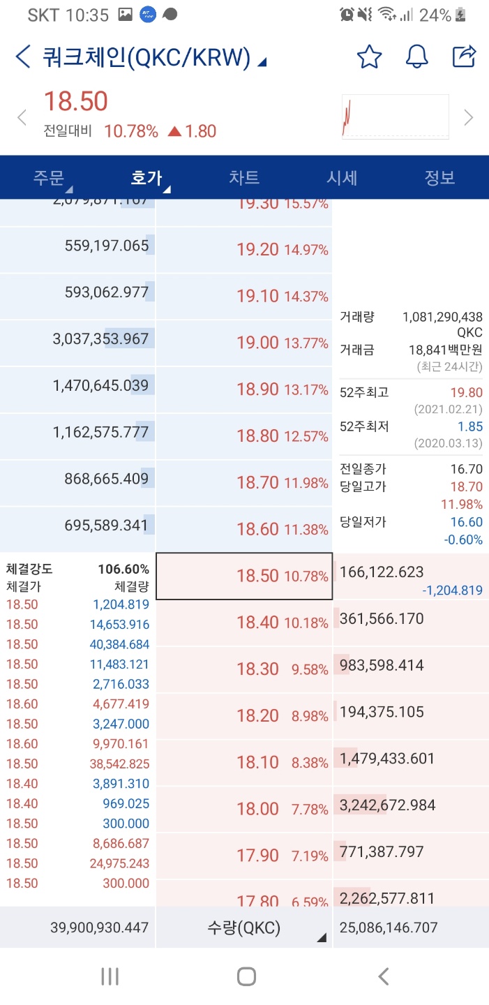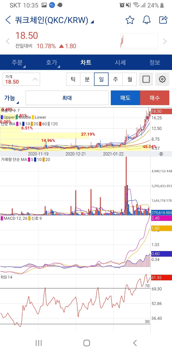 이 쿼크체인도 슬금슬금 잘 오르고 있네요