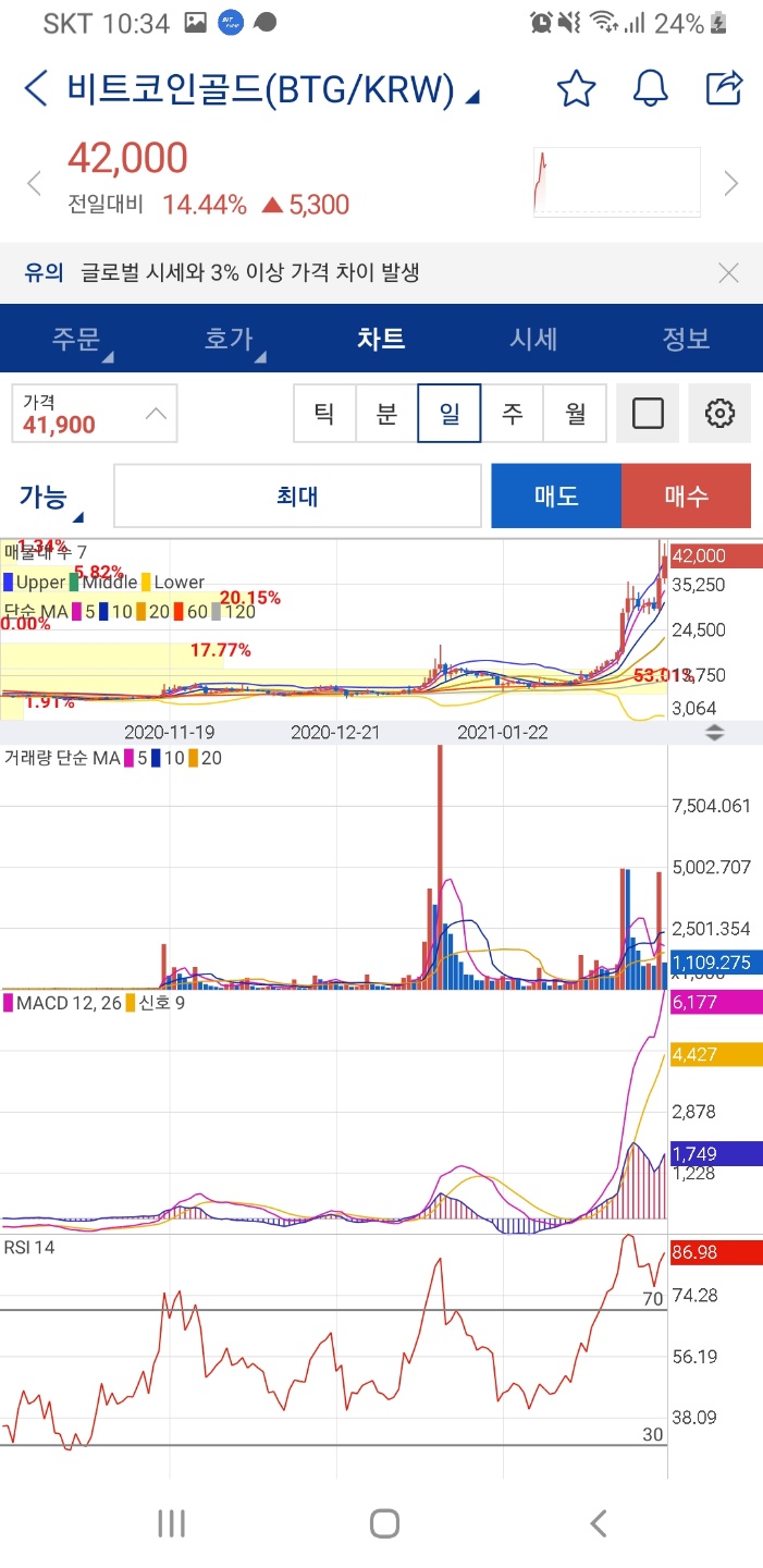 어제랑 오늘 비트코인 골드가 계속 오르고 있고 얼마전에 판