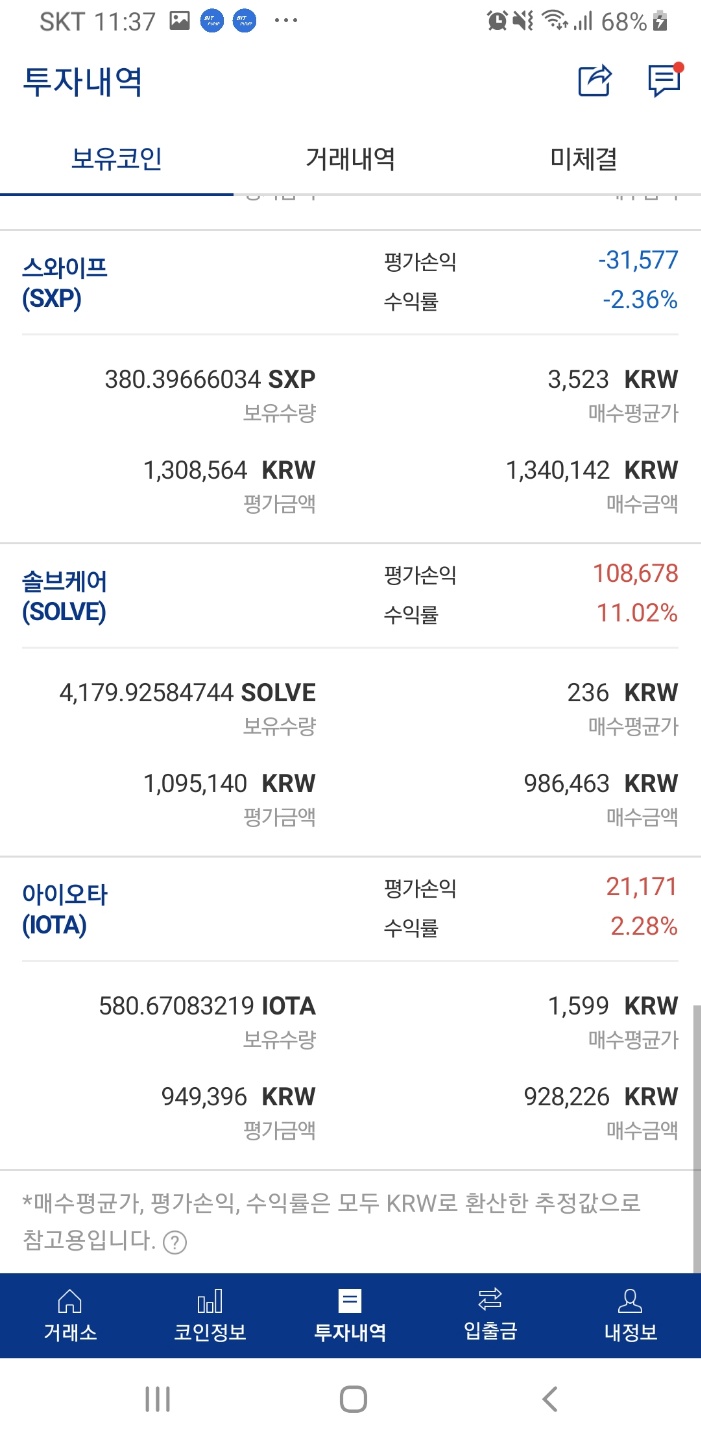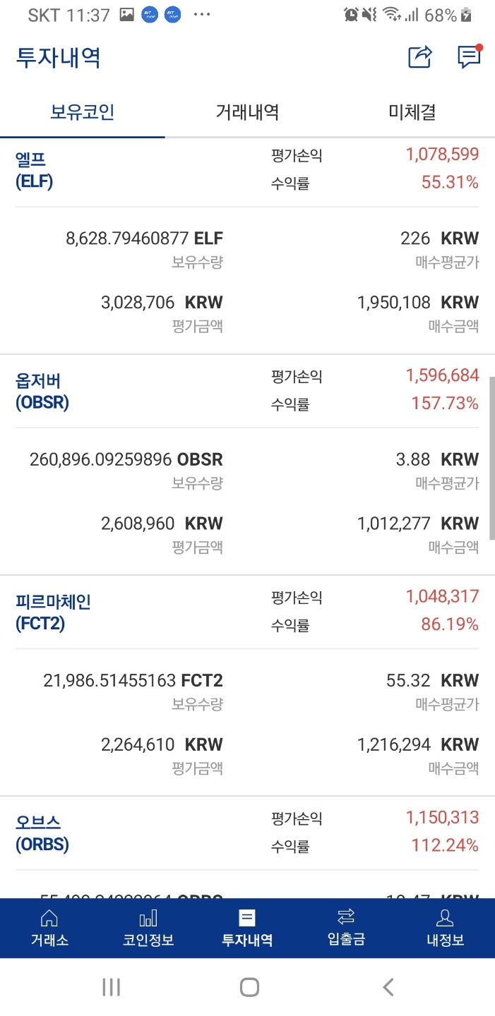 아무래도 수익률이 큰 코인들을 가지고 있는 상태에서