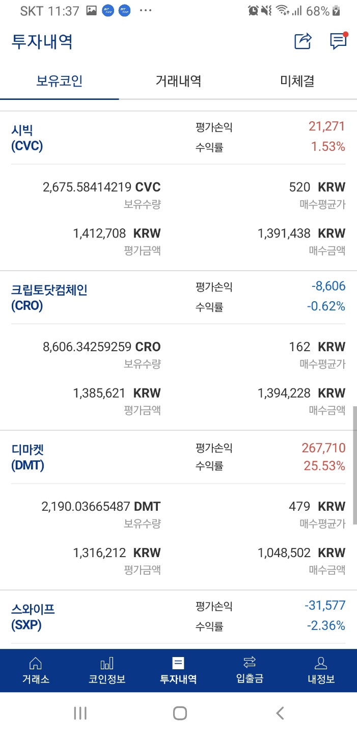 결국 700만원을 다 새로운 코인에 그제랑 어제 넣었네요
