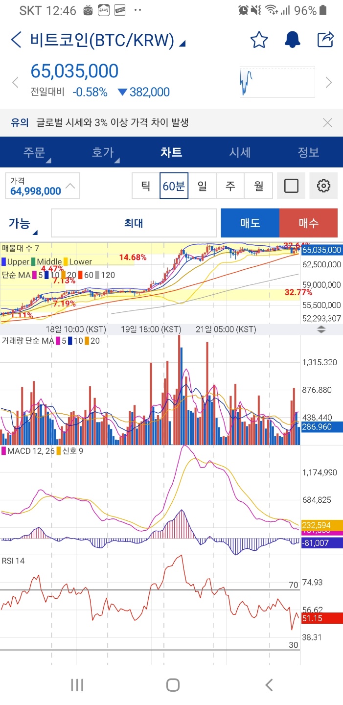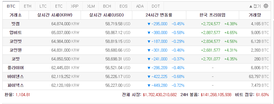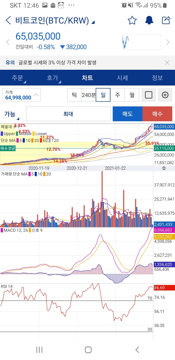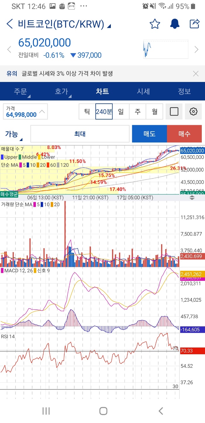 며칠전부터 김프가 쌓여갔는데 이제 4~5%김프를 끼고 있고