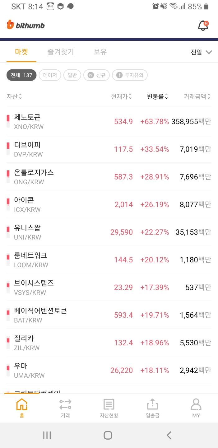 아무튼 빗썸 코인들은 역시나 업비트에서