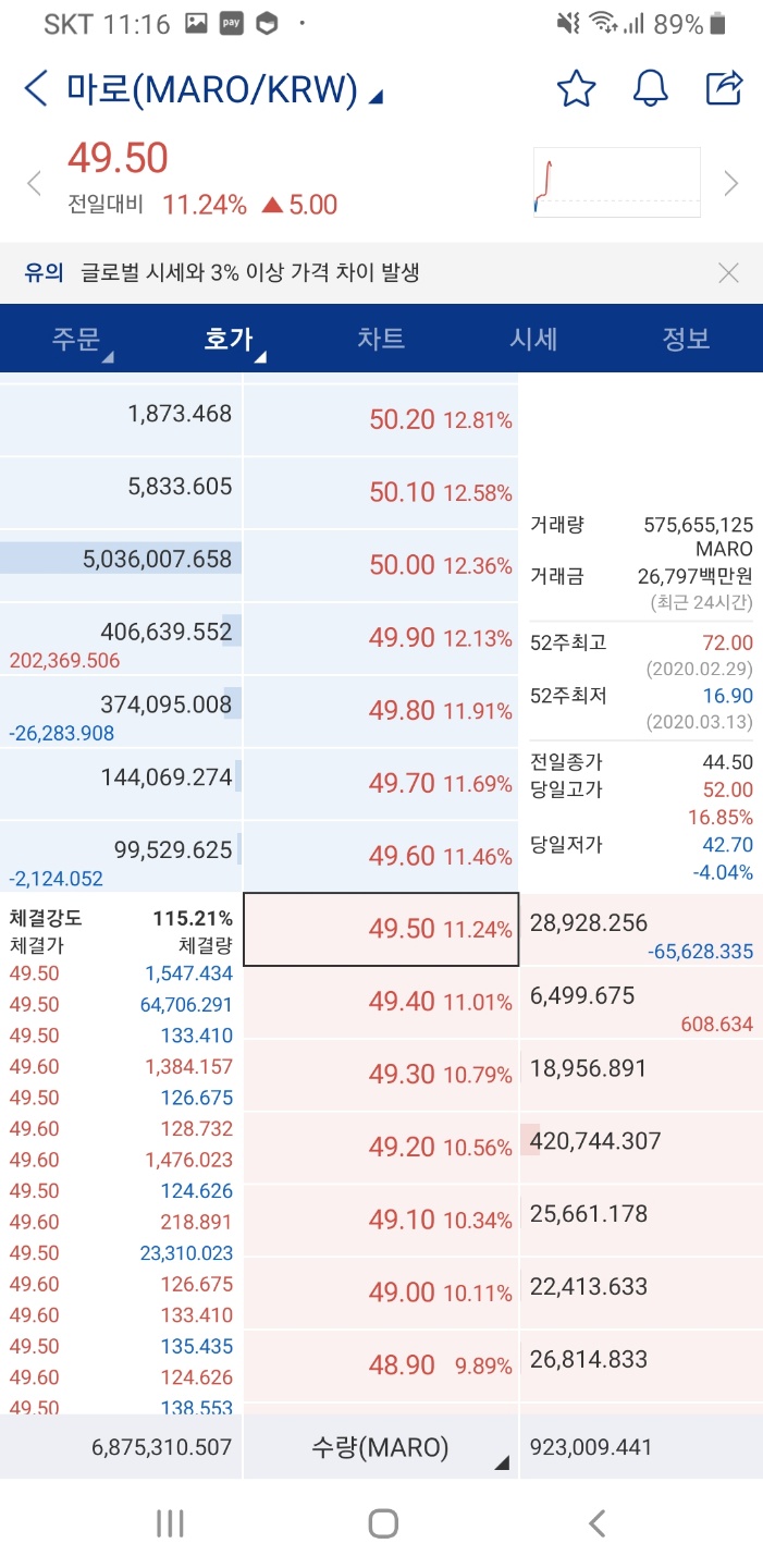 업비트측에서 보유한 마로 평단가가 그당시 이 가격보다 높은걸로