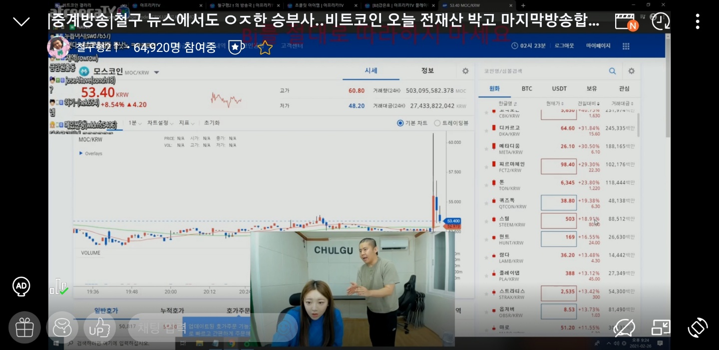 방송 시청인원이 7만명이 넘어가고 시청자들이 따라사기에 결국 펌핑이 될 수밖에 없고