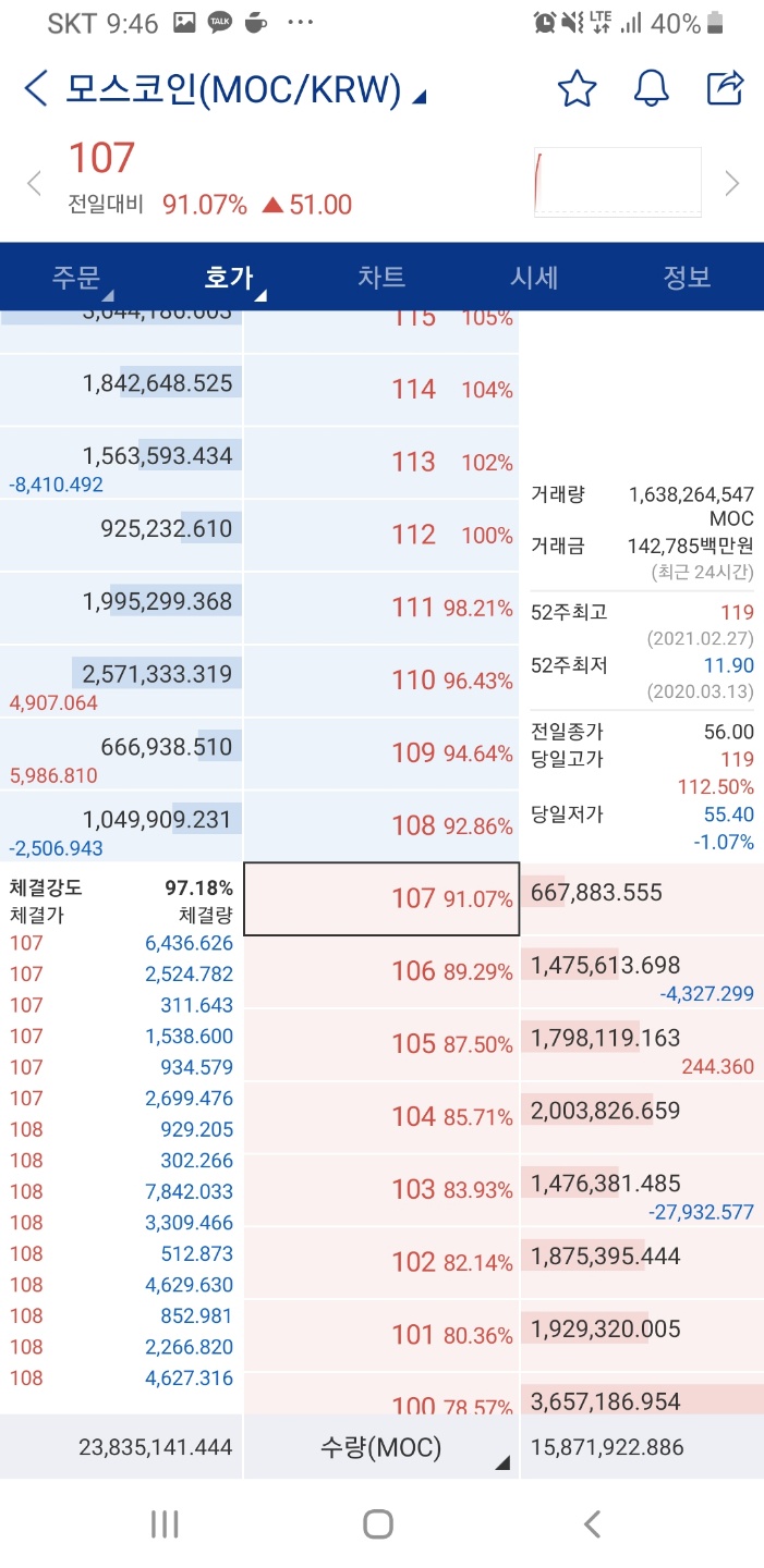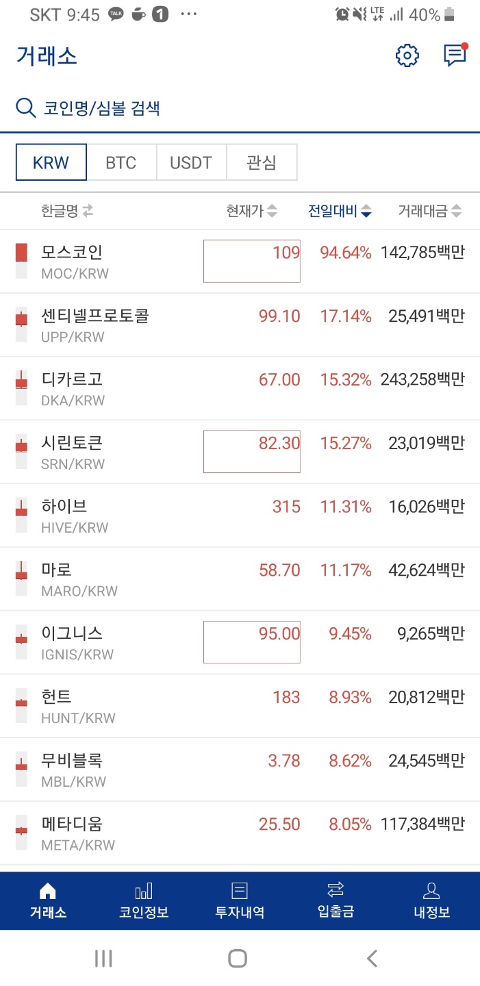 오늘만 해도 제일 대장으로 나가던 모스코인 빼고
