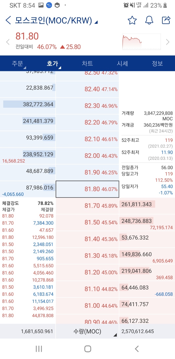 모스도 100%이상 오르긴 했지만 저녁대는 그 절반인 50%에도