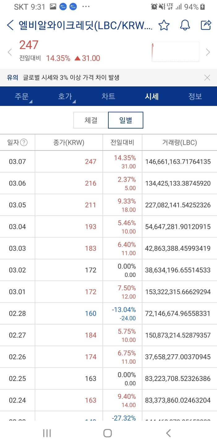 엘비알와이크레딧 코인도 어제 펌핑되었던