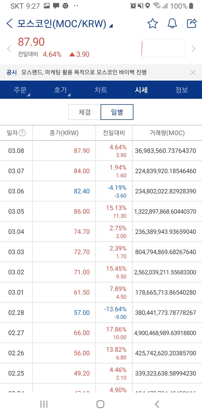 | 2021년 3월 7일 업비트 펌핑코인 시세(엘비알와이크레딧,아이스타이늄,이더리움클래식,헌트,칠리즈,보라) (0) | 2021.03.07 |