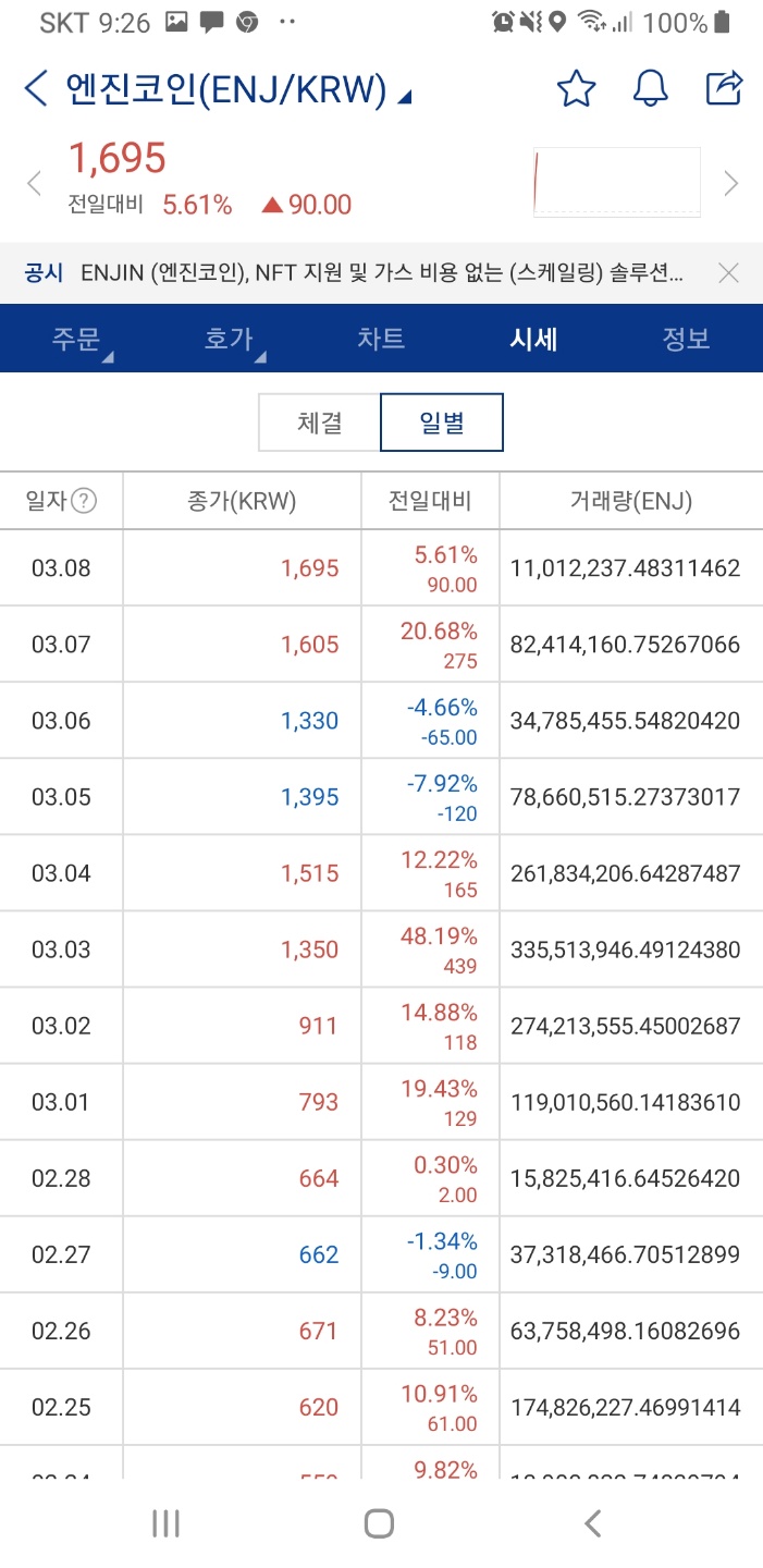| 2021년 3월 7일 업비트 펌핑코인 시세(엘비알와이크레딧,아이스타이늄,이더리움클래식,헌트,칠리즈,보라) (0) | 2021.03.07 |