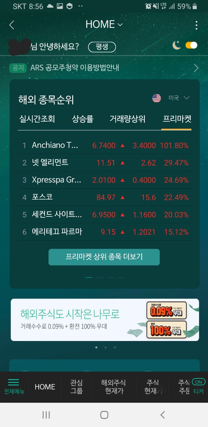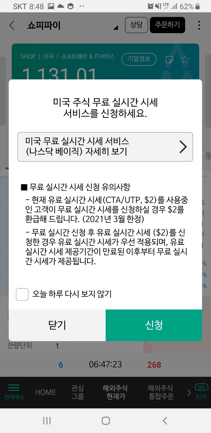 실시간 해외주식시세도 무료로 바뀌었습니다.