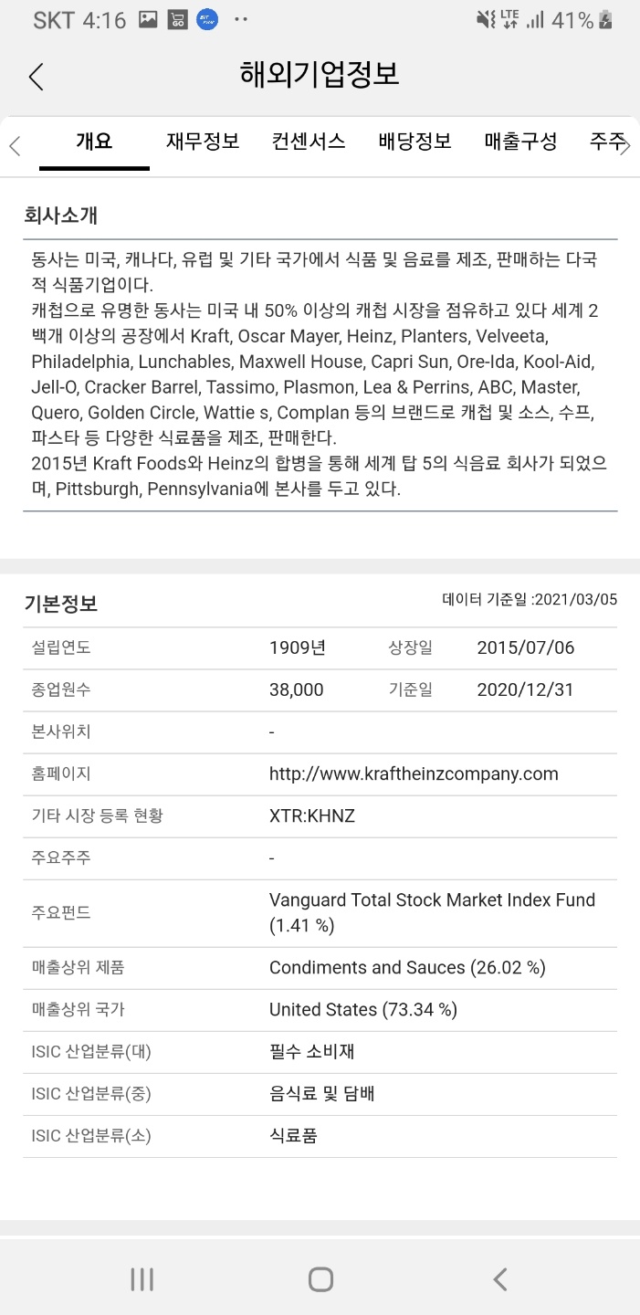 그동안 계속 봐왔던 코카콜라와 크래프트 하인즈를