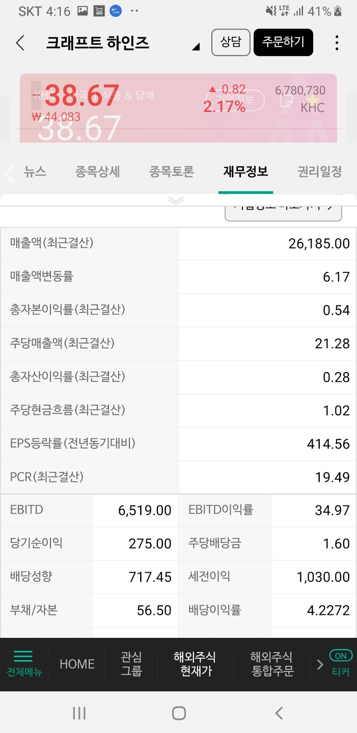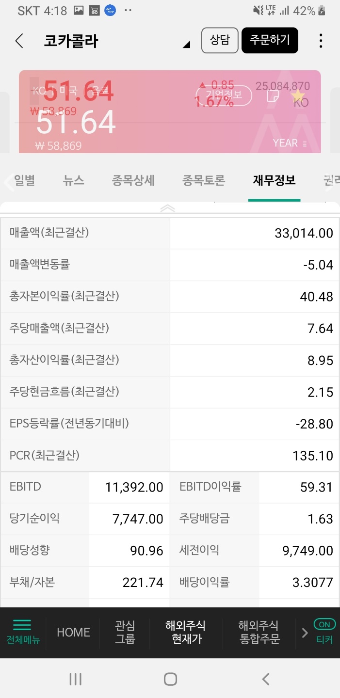 배당이익률도 3.3%로 우량주치고는 나쁘지않다.