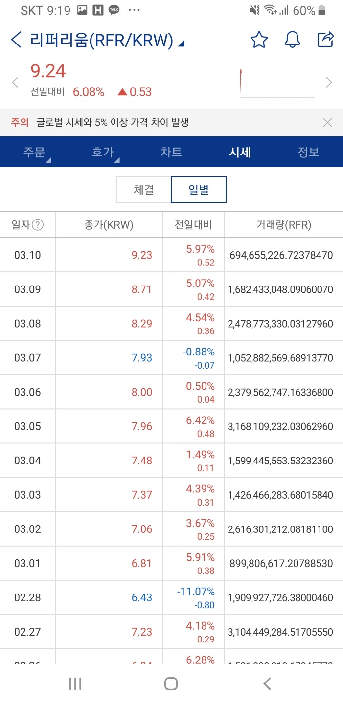 조금만 더 올라가면 10원대